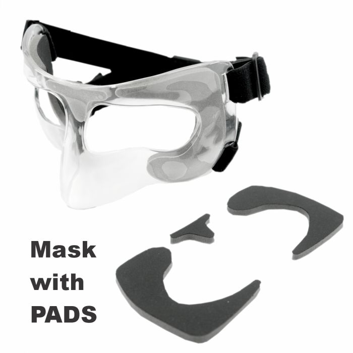 The Bodyassist Deluxe Face/Nose Guard provides high-performance protection for injured noses during sports. Constructed with high-impact plastic and removable padding, it allows athletes to stay active while maintaining comfort and a secure fit.
